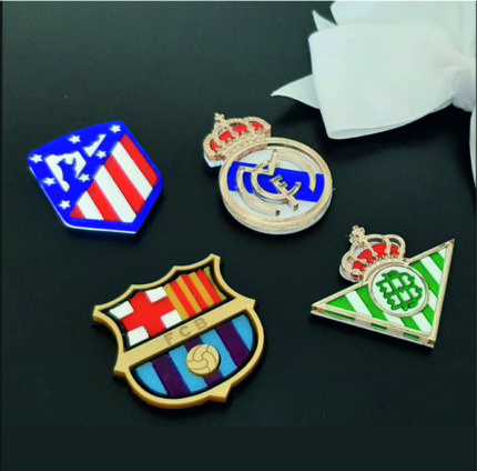 Escudo de tu equipo  favorito en metacrilato efecto espejo Tamaño aprox 3.5cm a 4cm aprox
