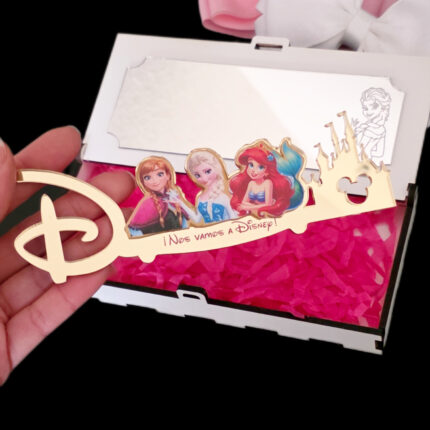 Caja Sorpresa: La Llave Mágica del Viaje de tus Sueños ¡Haz que el anuncio sea tan inolvidable como el viaje mismo! Madera blanca  y Metacrilato Tiempo de Entrega de 5 a 7 días laborables