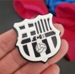 Escudo de tu equipo  favorito en metacrilato efecto espejo grabado en negro Tamaño 3.5 a 4 cm