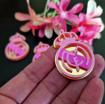 Aplique decorativo inspirado en la Marca del diseñador Karl Lagerfeld con resina protectora alto brillo Tamaño 4cm alto x 3.3cm ancho