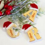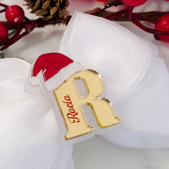 Apliques decorativos con la inicial en dorado espejo, grabado de nombre en rojo