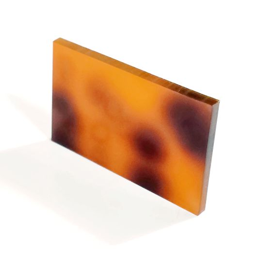 El metacrilato efecto carey tiene un diseño que imita el patrón del caparazón de la tortuga carey