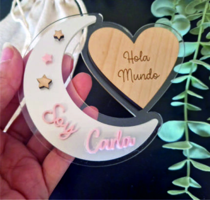 Placa Hola Mundo Luna y Corazón
