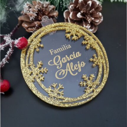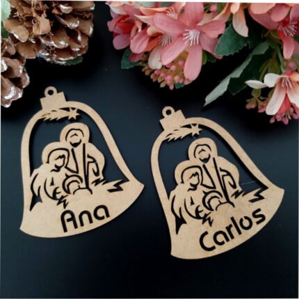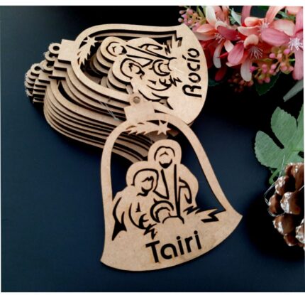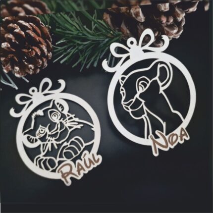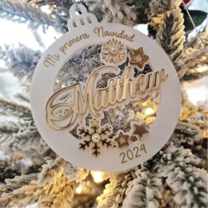 Bolas de Navidad cortada en láser, elaborada en madera blanca 3mm Tamaño: 10cm alto x 9 cm ancho Nombre personalizado